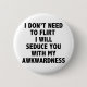I Don’t Need To Flirt I Will Seduce You With My Awkwardness button. The phrase “I don’t need to flirt I will seduce you with my awkwardness” printed in Abadi MT Condensed Light Font. A great geek humour gift for shy and socially awkward people.