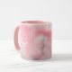 White inscription "I don't have to be perfect, I'm already good" on a pink watercolor background.