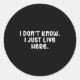 I Don't Know I Just Live Here, Sarcasm Joke Sarcas Classic Round Sticker