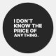I Don't Know The Price Of Anything Funny Quote Hum Classic Round Sticker