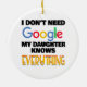 I Don't Need Google My Daughter Knows Everything is a funny design for a mum or dad who thinks her daughter is a know-it-all. Perfect gift idea for a mother or father that loves sarcasm and humour.