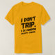 This t-shirt design reads: "I don't trip. I do random gravity checks." Choose the size and color that best fits you!