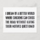 I dream of a better world where chickens can cross the road without having their motives questioned.