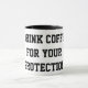 This funny and sarcastic mug features the phrase “I drink coffee for your protection” — because some mornings require more than just good vibes.