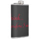 The flask itself is fine. It’s a cheap flask, obviously bought in bulk, however am prepared to overlook that. Given that it is a personalized item, I would have liked to have seen gift boxing instead of the generic packaging. Terrible printing, and/or quality. It’s a cheap, tacky vinyl. It is not cut straight and is also applied in a way that it is overhanging the bottom, causing the glue to catch on items and it will eventually roll and tear, damaging the wrap.
