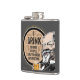 The flask itself is fine. It’s a cheap flask, obviously bought in bulk, however am prepared to overlook that. Given that it is a personalized item, I would have liked to have seen gift boxing instead of the generic packaging. Terrible printing, and/or quality. It’s a cheap, tacky vinyl. It is not cut straight and is also applied in a way that it is overhanging the bottom, causing the glue to catch on items and it will eventually roll and tear, damaging the wrap.