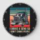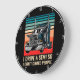 This witty clock is perfect for the semi-truck driver with a strong personality and a sense of humour. Featuring a cool blue semi-truck against a retro sunset backdrop and the hilarious phrase "I DRIVE A SEMI SO I DON'T CHOKE PEOPLE," it's a unique and relatable gift for any road warrior.