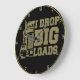 This bold wall clock features a humourous, tongue-in-cheek message for the seasoned truck driver. Against a black background and framed by a golden-yellow rim, it displays a stylised semi-truck graphic. The text "I DROP BIG LOADS" is prominently featured in a distressed, golden-yellow font, making a playful and somewhat suggestive statement about the nature of their work.