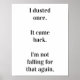 Get some giggles with this poster. I dusted once. It came back. I'm not falling for that again.