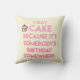 NewParkLane - Throw pillow, with funny quote 'I eat cake because it's somebody's birthday somewhere' in modern typography in gradient hot pink, with a little cupcake.