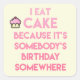 NewParkLane - Stickers, with funny quote 'I eat cake because it's somebody's birthday somewhere' in modern typography in gradient hot pink, with a little cupcake.