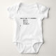 The baby overall is featuring a "code" of a procedure (functional) loop of the baby's life: babies under the age of 6 months eat, poo & sleep. The wording are written using programing language.