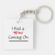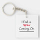 Allow "I Feel A Sin Coming On" humourous phrase to give you a laugh when you carry your keychain with your keys . Phrase in black lettering with "Sin" in bright red. White background.