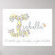 Pretty I monogram art name poster perfect for a girls bedroom or playroom in shades of grey, white, yellow, pink and purple. Personalise with your child's own name beginning with J, and name meaning for a truly personalised unique gift for your child's bedroom or nursery, this example is for the name I Isabella Devoted to God. Beautiful, energetic & talented. Cute poster print ideal for a new baby, christening or baby shower gift. © Unique letter I monogram hearts and flowers drawing and graphic art design by Sarah Trett. www.sarahtrett.com for www.mylittleeden.com