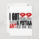 For anyone who has had the horrid displeasure of taking care of or having a Fistula, this is the perfect product to express that. Phrase, “I Got 99 Problems & A Fistula Ain’t One,” in a variety of fonts & sizes, with words alternating colours between grey, black, & red.