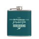 The flask itself is fine. It’s a cheap flask, obviously bought in bulk, however am prepared to overlook that. Given that it is a personalized item, I would have liked to have seen gift boxing instead of the generic packaging. Terrible printing, and/or quality. It’s a cheap, tacky vinyl. It is not cut straight and is also applied in a way that it is overhanging the bottom, causing the glue to catch on items and it will eventually roll and tear, damaging the wrap.