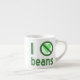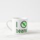 I hate beans. Design uses green letters, a green heart and the international "NO" sign to read , "I hate beans". For those that do not "heart" them.