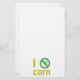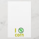 I hate corn. Design uses yellow letters, a green heart and the international "NO" sign to read , "I hate corn". For those that do not "heart" it.