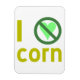 I hate corn. Design uses yellow letters, a green heart and the international "NO" sign to read , "I hate corn". For those that do not "heart" it.