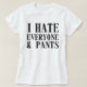 Let the world know with this special edition t-shirt I Hate Everyone & Pants .