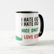 Unique and fun sports mug for coffee, tea, milk, or juice. With image of cute female golfer and "I Hate Golf! I Love Golf!" text. Made for the golf lover / fan. This mug is a great birthday or Mother's day gift for the mum or woman who loves to play golf.