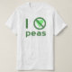 I hate peas. Design uses green letters, a green heart and the international "NO" sign to read , "I hate peas". For those that do not "heart" them, really dislike them, but have a sense of humour (humour), love to laugh and have their funny bone tickled.