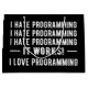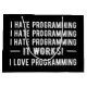 'I Hate Programming. It Works! I Love Programming' funny quote for programmers, tech enthusiasts, coders, and developers.