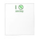 I hate shrimp. Design uses green letters, a green heart and the international "NO" sign to read , "I hate shrimp". For those that do not "heart" it.