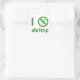I hate shrimp. Design uses green letters, a green heart and the international "NO" sign to read , "I hate shrimp". For those that do not "heart" it.