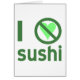 I hate sushi. Funny design uses green letters, a green heart and the international "NO" sign to read , "I hate sushi". For those that do not "heart" it.