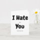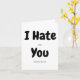 This folding card is printed with a funny, fake message that seemingly says "I hate you" but, if you read between the lines, it actually says "I hate when you are not by my side". Perfect for an April Fool's or light-hearted Valentine's card.
