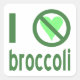 I hate broccoli. Design uses green letters, a green heart and the international "NO" sign to read , "I hate broccoli". For those that do not "heart" it, really dislike it, but have a sense of humour (humour), love to laugh and have their funny bone tickled.