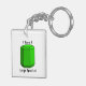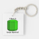This acrylic keychain features a model of a large, green apatite crystal and reads "I have a large apatite!" It's a pun on "appetite." Apatite has a hexagonal dipyramidal crystal structure.