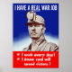 This vintage World War II poster features a proud coal miner and a red, white, and blue background. It declares, "I have a real war job -- I work every day! I know coal will speed victory!" Celebrate American and WW2 History with this digitally restored vintage war poster product from The War Is Hell Store.