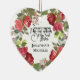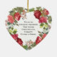 Christian personalised Christmas ornament depicts an elegant watercolor floral wreath of red and pink roses, berries, greenery and hearts. It features Bible Verse Song of Solomon 3:4, "I have found the one my soul loves." The back features inspirational quote, "Two lives united in friendship, Two friends united in love, One love united in Christ." Beautiful ornament for wedding, engagement, anniversary, Valentine's Day and more.