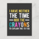 Pick up this funny design saying "I Don't Have The Time Or The Crayons To Explain This To You", perfect for sarcastic people with a unique sense of humour and classy style!