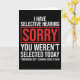 A perfect card for anyone with a sarcastic sense of humor! This “I Have Selective Hearing — Sorry You Weren’t Selected Today” design features bold distressed typography and a witty message that dads, grandpas, retirees, and humor lovers enjoy. Great for birthdays, Father’s Day, retirement parties, office humor, or everyday wear. A funny gift for men who love dry humor, sarcastic jokes, and classic bold statement card.