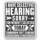 Funny Saying "I Have Selective Hearing Sorry You Weren't Selective Today Tomorrow Isn't Looking Good Either". Features a funny quote about hearing that is awesome for work, gym, school or home. Funny adult humour saying present idea for old people, older men, women, bad listeners.