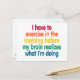 Great gift for fitness fanatics and exercise enthusiasts! Reads "I have to exercise in the morning before my brain realises what I'm doing."