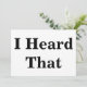 Standard white card with "I Heard That" in a large bold black font on both sides.
