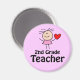 Second Grade magnet has cute stick figure teacher with red heart has 2nd Grade Teacher slogan. It's perfect for putting on the fridge or a metal file cabinet or a classroom chalkboard!
