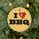 I heart BBQ, Steak Heart Shape Funny Grilling Ceramic Ornament