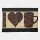 Proudly proclaim "I Love Coffee" with this coffee bean heart design on any color background you choose! This I Love Coffee design kitchen towel is a great conversation piece with practical use! Excellent for any coffee lover!
