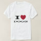 Black text and red heart design for dog lovers reads "I (heart) Dogs!" on I Heart Dogs T-shirts, bodysuits, mugs, cards, tote bags, keychains, and other dog lover apparel and gift items.