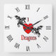 I Heart Dragons Black Roman Numerals Square Wall Clock