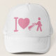 I heart golfing or I love golfing pink and white women's golf ball cap. The design features a pink golfer pulling clubs and a pink heart and you can change the colour of the white ball cap as well. Makes a great gift for a woman who loves golfing. You can also add a name to personalise it.