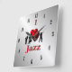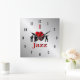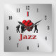 I Heart Jazz Music Silver w Black Numbers Square Wall Clock