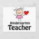 Fun kindergarten school teacher design has a stick figure girl with red heart and Kindergarten Teacher quote.