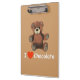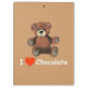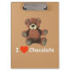 Features a teddy bear. Beneath him text reads "I Heart (Love) Chocolate."
