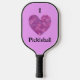 My original art is featured on this fun pickleball paddle, consisting of a pink camouflage pattern in a heart shape with the words "I" and "Pickleball" on the back and the front has the pink camouflage pattern all over. Art was processed with a slight distressed appearance for an artsy, retro flair. The paddle standard size, approved by the USA Pickleball with certification on front.